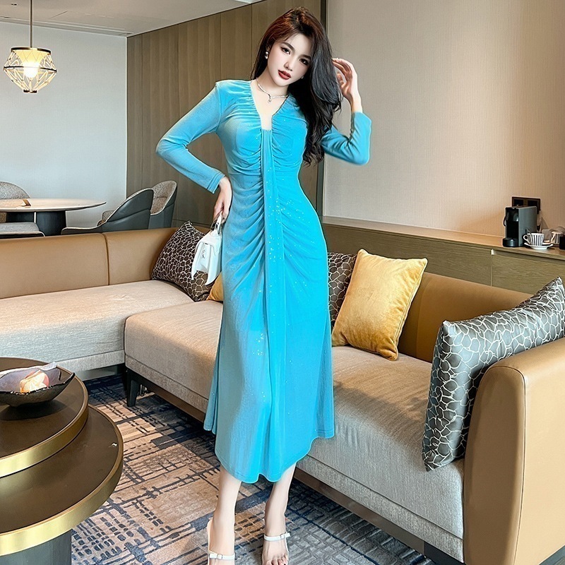 好評 パーティードレス レディース マキシ 半袖 vネック マーメイド ワンピース フォーマル 大きいサイズ スリット 刺繍 キャバ カラードレス 結婚式